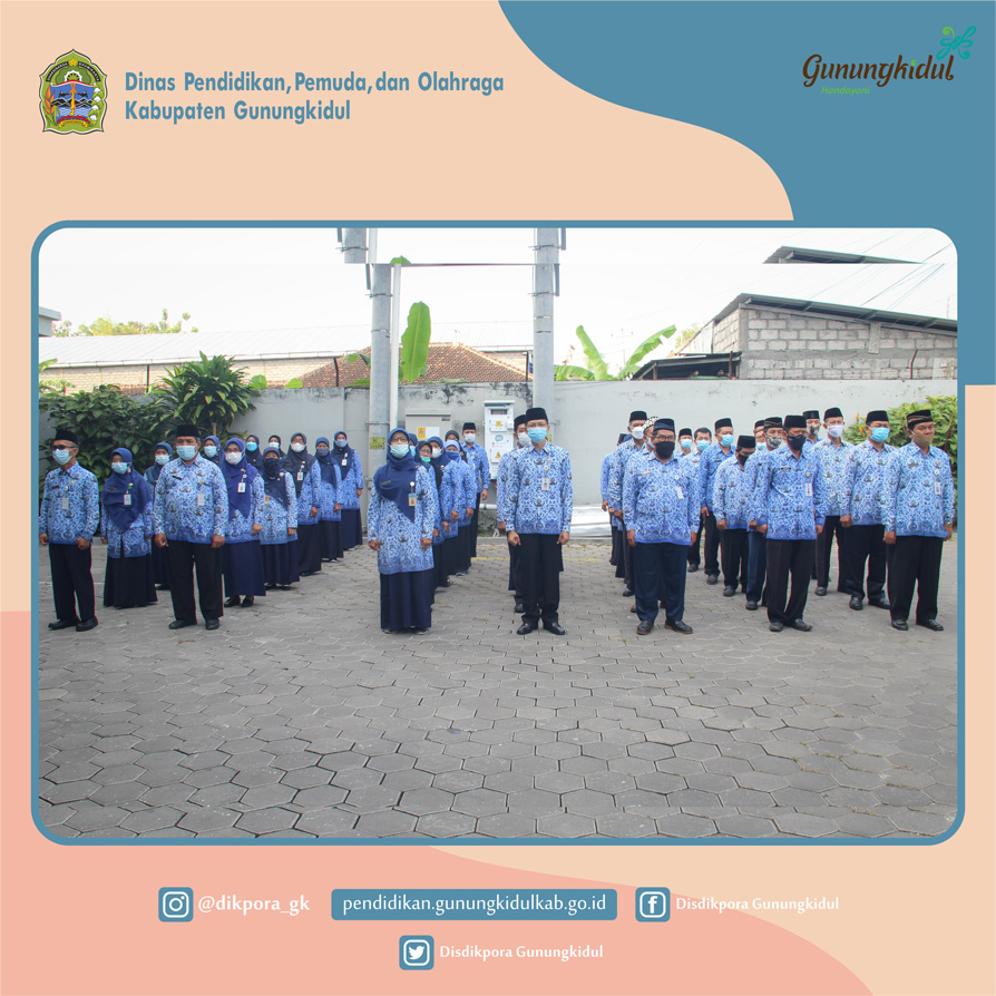 WONOSARI- Dinas Pendidikan, Pemuda, dan Olahraga (Disdikpora) Kabupaten Gunungkidul melaksanakan apel pagi dan ikrar halal bihalal. Bertempat di halaman kantor
